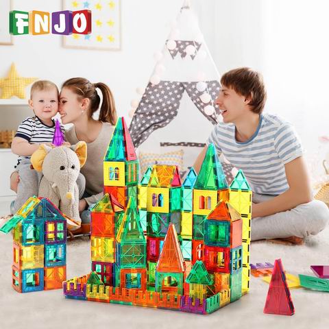 由优质ABS塑料制成,不含BPA和铅,符合ASTM认证,内部强力磁铁使建筑更加牢固。色彩鲜艳、透明度高,光线透过时呈现彩虹效果。安全圆边设计,适合孩子安全玩耍。帮助孩子学习颜色匹配、构造、分类和堆叠技能,同时远离电子游戏,增进亲子互动。