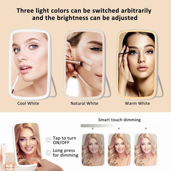 KBTRCMI 68 LED 三色温 可充电触控化妆镜5折 19.99加元包邮!送10倍放大镜!3款可选!
