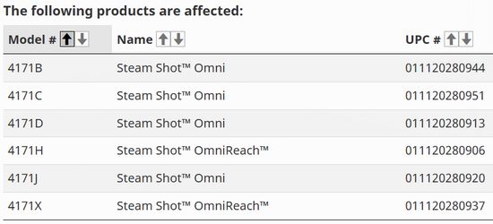 此次召回涉及的是 Bissell 品牌 Steam Shot OmniReach 和 Steam Shot Omni Steam Cleaner 的附件,相关产品型号包括: