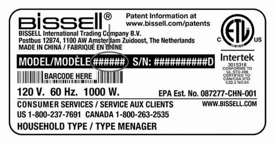 如果你不确定自己家里的机器是否在召回范围内,可以按照 Bissell 官方提供的方法进行核对。Bissell 在召回页面中说明,消费者可以将机器翻过来,查看蒸汽清洁机底部的产品铭牌标签(product rating label sticker)。型号会显示在该标签上一条较大的黑色横条中,通过这个位置就能确认自家产品是否属于受影响批次。