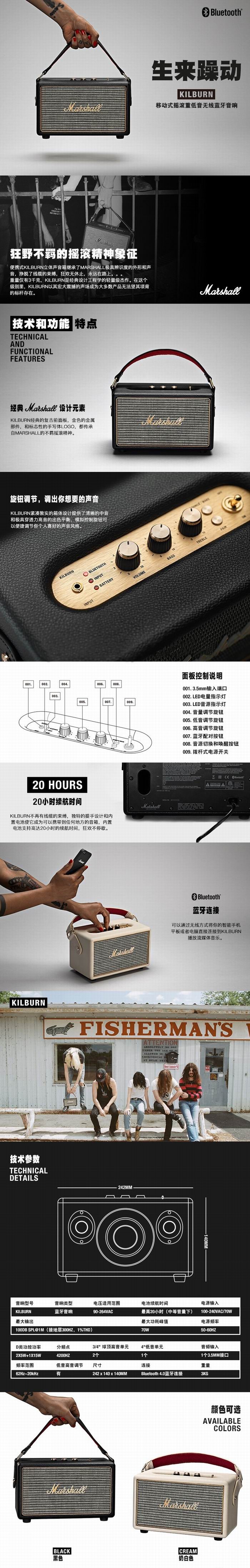 Kilburn的连接性十足,同时拥有蓝牙无线传输,和最广为运用的3.5mm音频接孔,搭配上经典的吉他音箱外型,从里到外,Kilburn不论是声音或外型都让人惊喜连连,机身内置20小时续航力的电池,让摇滚无线(限)不停歇。
