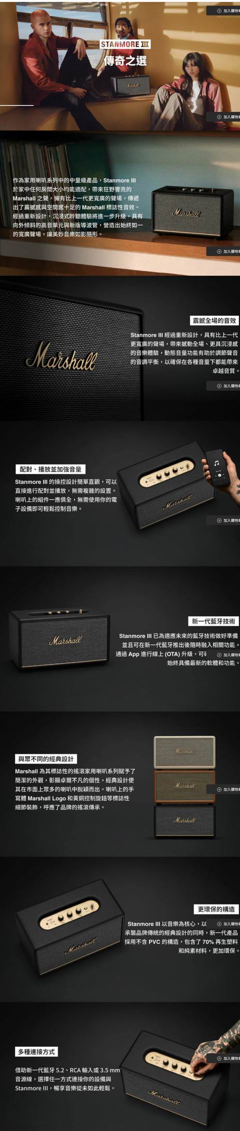 史低价! Marshall Stanmore III 无线蓝牙音箱 379.98加元(原价 529.99加元)