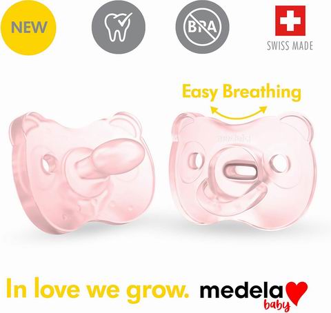 Medela 婴儿粉色软硅胶奶嘴2件套 带消毒盒 不含 BPA 支持自然吸吮 7.24加元