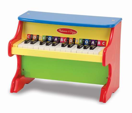 仿钢琴设计,琴键宽度比照标准钢琴琴键设计,共有25个琴键,清脆的共鸣琴声、琴键触感,皆与一般电子钢琴截然不同。钢琴采全新硬木制成,以红、黄、绿来搭配可爱小音符装饰,缤纷色彩深受幼儿喜爱外,也非常坚固耐用。