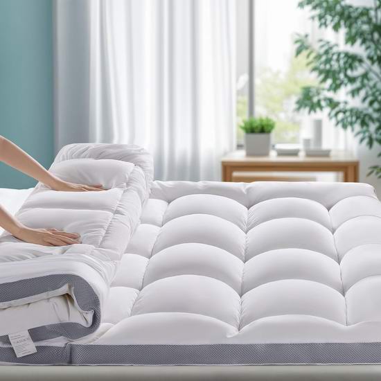 这款床垫罩采用7D仿羽绒填充物和碎记忆海绵,并经过1000多次实验测试的优化。与硬质块状海绵垫层不同,碎记忆海绵能够自适应地贴合身体曲线,无论采用何种睡姿,都能提供全身支撑。采用3D透气网状结构,透气网状设计使空气能够自由流通于床垫内部,防止闷热,保持睡眠表面通风良好。这种增强的空气流通确保床垫保持清新舒适,提供持续透气性,带来更愉悦的睡眠体验。通过了OEKO-TEX和CertiPUR-US双重认证,采用安全优质的材料制成。床垫罩采用可拉伸的深口袋设计,适用于厚度为 8 至 21 英寸的床垫。