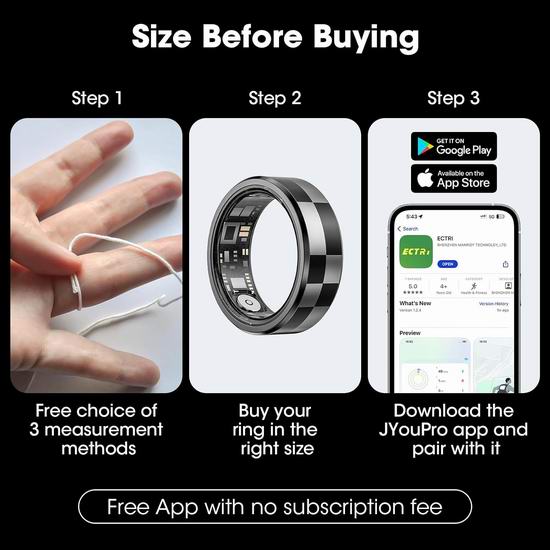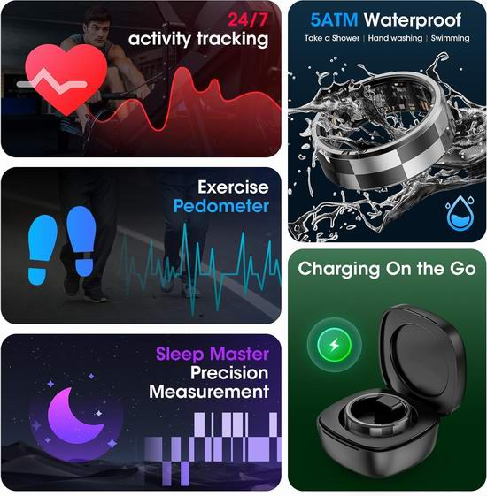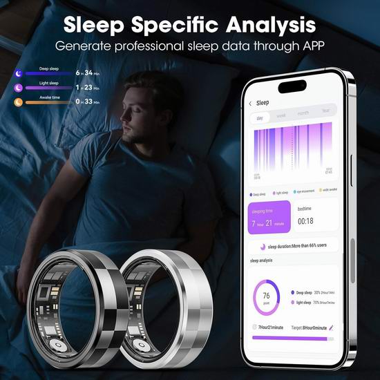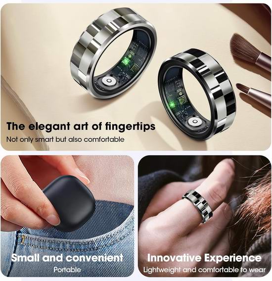 这款智能戒指搭载先进的HX3605传感器,全天候实时监测健康状况,并提供多种检测功能,让您随时掌握各项重要身体指标。睡眠监测功能可深入分析您的睡眠时长和质量,助您安享一夜好眠,醒来神清气爽。戒指采用不锈钢材质,展现出现代而充满活力的风格。磨砂和抛光表面的巧妙结合,在不同的光线下呈现出不同的光泽效果,低调奢华。符合人体工学的设计,即使长时间佩戴也能确保舒适。提供多种运动模式,并监测您的所有活动。凭借计步、距离追踪和卡路里消耗计算等功能。内置远程拍照功能,用户可以通过它远程控制手机拍照,只需摇晃手指两次即可自动按下快门。兼容Android 6.0及以上版本和iOS 11.0及以上版本系统。充电30分钟,即可连续使用5至7天。具有5ATM防水等级,在淋浴或游泳时也能安心佩戴。