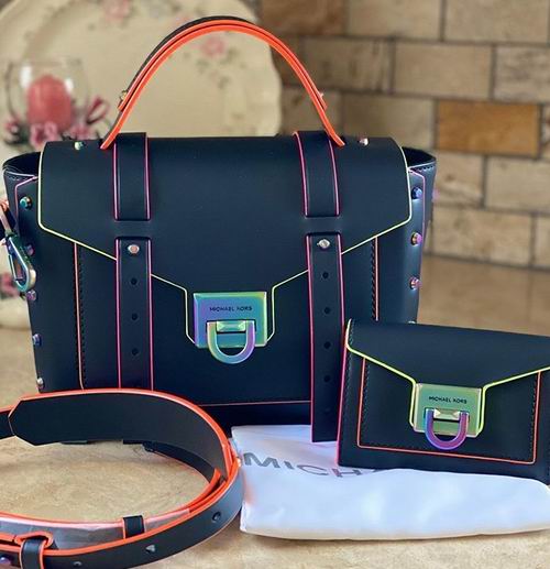 MK推出的 Manhattan 系列,时尚感很强的邮差包。此款 Manhattan 斜挎包是对经典行李包的时尚演绎。巧妙采用光滑意大利皮革精心制作,装饰金属包角和别致铆钉。包身正面外侧特意设计一个狭缝口袋,翻盖搭配闪亮锁扣,方便取放手机。