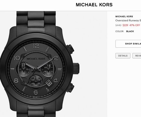 Michael Kors 男式  Runway Chronograph 三眼计时 不锈钢腕表 黑色款 229加元(官网原价 440加元)