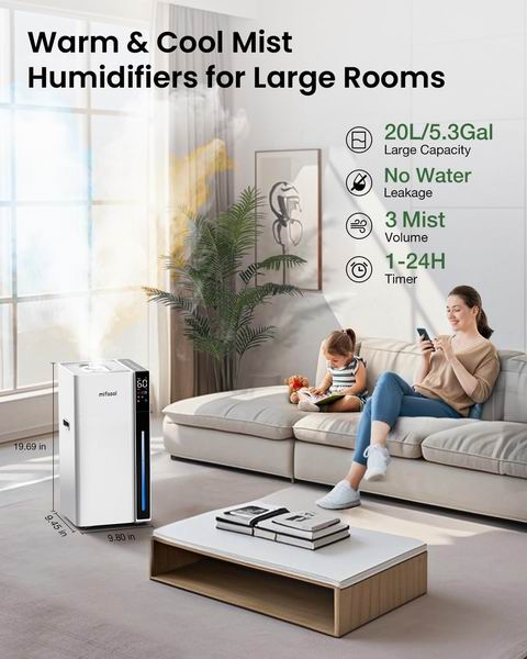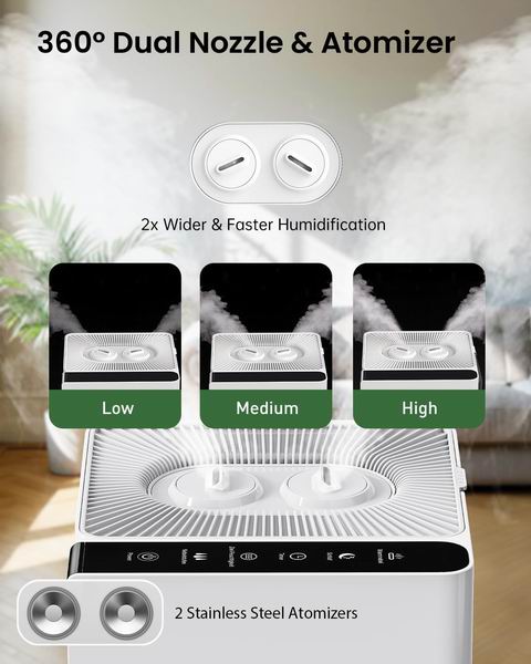 这款20升/5.3加仑的大容量加湿器,集冷暖雾双模式、双雾化喷嘴和智能控制于一身,功能非常全面。