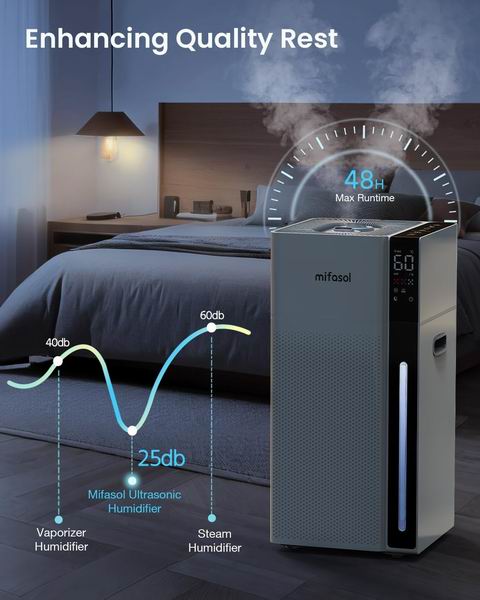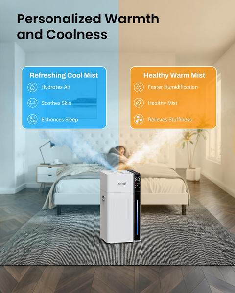 🔹 冷暖雾双模式:您可以根据季节和需求灵活选择。冷雾模式能在不改变室温的前提下增加湿度,适合日常或天气炎热时使用;而暖雾模式出雾温度可达40℃,不仅能带来冬季所需的温暖感,其加热过程也有助于抑制水中细菌。