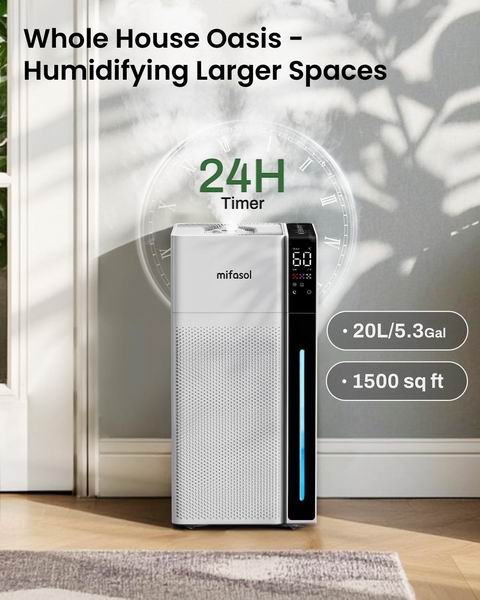 🔹 超大容量与持久加湿:20升的水箱容量非常可观,能够满足长达48小时的持续运行,这意味着您无需频繁添水,尤其适合在整屋、大办公室或为植物温室等大面积空间提供稳定的湿度环境。