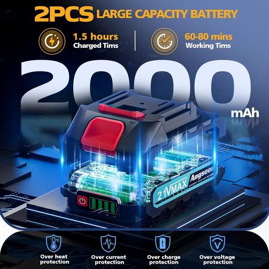 这款迷你电锯搭载1000W无刷强力电机,相比普通电锯,它的效率更高,可以在6秒内轻松切割6英寸木材,无需担心因过热而导致电机损坏。无需螺丝刀,只需旋转旋钮,即可轻松调节链条张紧度,保证电锯始终处于最佳工作状态,大大节省使用时间和精力。内置润滑链条系统,只需将润滑油倒入油箱并按压泡孔,即可润滑链条,减少磨损并提高切割效率。配备2块2000mAh锂电池和1个充电器,续航时间为70-90分钟。五重安全设计,安全锁防止误启动,安全挡板防止木屑飞溅,配备护目镜防止木屑进入眼睛,配备手套保护双手,防滑纹理手柄防止操作时滑手。