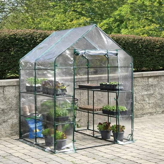 这款步入式温室是室内外园艺的理想选择,能够提早开始育苗或延长植物的生长季节。配备 8 个可拆卸的坚固金属网架,有效利用空间,为植物提供充足的生长区域。温室采用快速卡扣框架设计,约 15 分钟即可完成组装,无需工具。安装时只需将盖子牢固系紧,确保温室稳固,抵抗晃动和外部环境影响。耐用钢架由高级 5/8 英寸钢管制成,表面经过优质粉末涂层处理,可防止碎裂、剥落、生锈和腐蚀,确保长期使用。透明 PVC 盖设计最大限度地增加光照,即使在寒冷季节也能为植物提供良好的光照条件。双拉链门便于进出和植物取用,提升操作便捷性。尺寸为142.2L x 142.2W x 193H厘米。