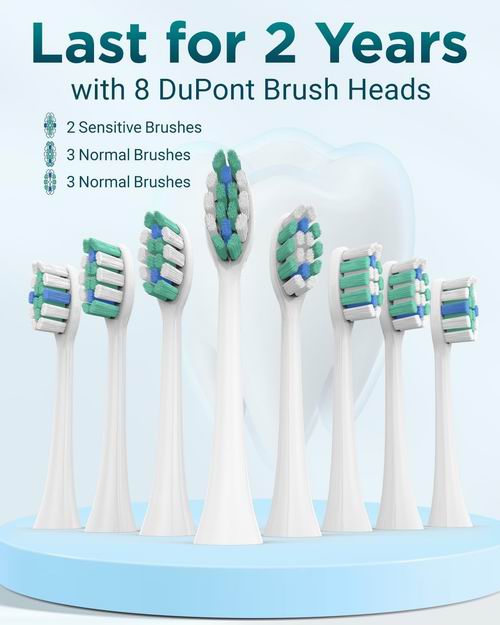 MISSCOZY 成人超声波电动牙刷每分钟最高 41,000 次高频振动,主打深层清洁与护龈,提供清洁/敏感/美白/抛光/按摩 5 种模式并支持一键切换;套装含 8 个刷头(约可用 2 年)、旅行盒与支架,USB 充电 3 小时可续航约 60 天,支持 IPX7 防水;内置 2 分钟智能计时与每 30 秒分区提醒,帮助养成更科学的刷牙习惯。