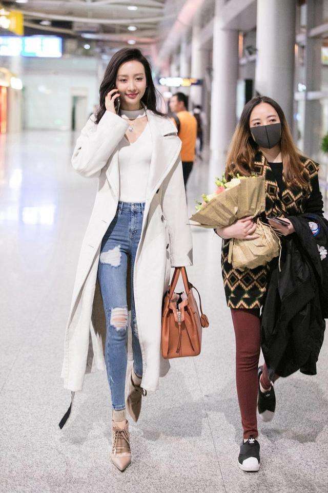 想要显得腿长,可以像王鸥一样,选择高腰的款式,把上衣塞进牛仔裤里,感觉腰下面都是腿啊。