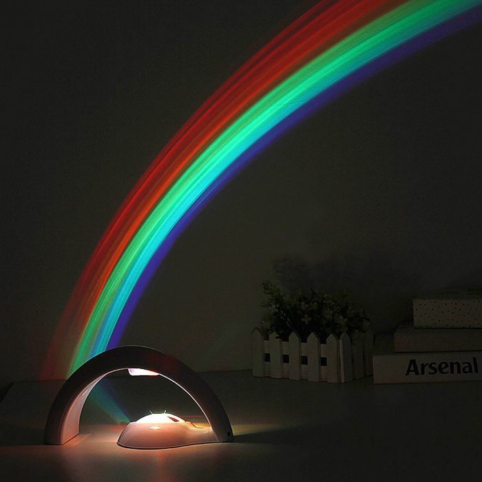 按下按钮,神奇的LED彩虹投影仪打开,您可以看到到整个墙壁和天花板上的彩虹。
