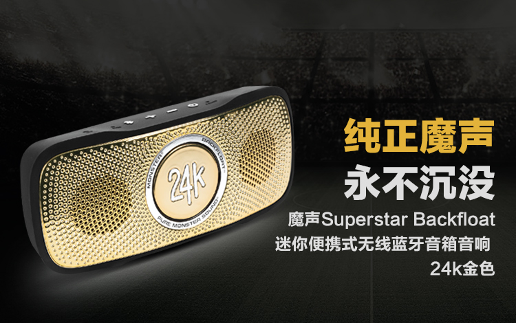 24K金,颜值高!小巧便携,适合各项户外活动。不仅拥有令人难以置信的音质和特色,还能够防止溅起的水花渗入机器,较酷的是能够仰浮在泳池中。无论您希望在海滩、泳池、淋浴、冲浪、户外或屋外享受音乐,为您带来倍受推崇、无与伦比的Pure Monster Sound环绕立体声音乐。享受音乐的同时,也不错过每一通来电。提供丰富的连接方式,包括蓝牙、USB 连接和直接AUX接入3.5毫米等三种方式。
