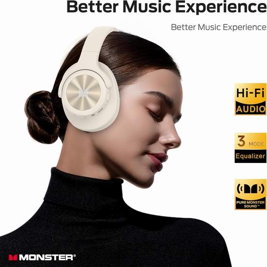 白菜价!历史新低!Monster 魔声 Mission 200 AI降噪 头戴式无线耳机3.1折 49.99