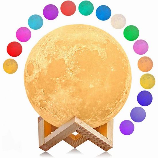 白菜价!历史新低!FHOLYO 16色可调光 3D打印 创意月球灯 13.99加元!