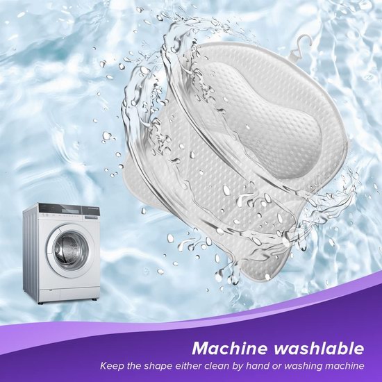 此款浴枕采用4D网眼面料制成,可让水和空气轻松通过这些孔渗透,快速干燥,通风透气,经久耐用且易于清洁。采用人体工学设计,无缝轮廓适合任何形状的浴缸,支撑头颈肩部和背部,有助于减轻压力、肌肉酸痛和头痛等。背部6个超强吸盘,可将浴枕牢牢固定在浴缸表面。枕头尺寸为16.9x16.8英寸。
