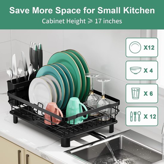 华人还是更喜欢手工洗碗,洗过的碗需要沥干水分。这款采用优质金属结构,黑色或灰色防锈涂层处理,侧面设有餐具沥水杯和杯架,底部设有排水板,可收集并排出多余的水,保持台面干燥整洁,排水口方向可调节,将洗好的餐具放在上面,让其水分、水滴沥干,是家庭主妇的好帮手!