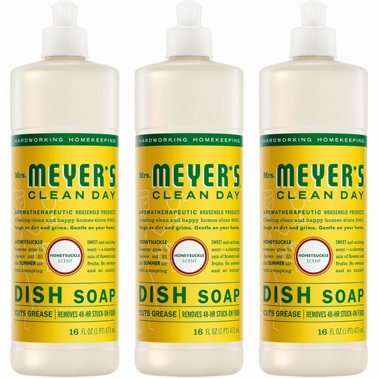 白菜价!历史新低!MRS MEYERS 金银花香型 天然餐具洗洁精(16盎司 x 3瓶)3.5折 8.71加元!