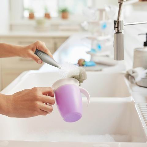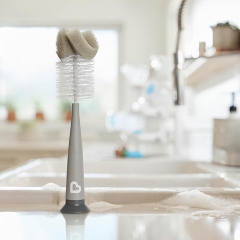 采用不含BPA材质,可直立放置,收纳更省空间,保持刷头更干爽;柔软耐用的尼龙刷毛不易刮伤奶瓶,适用于大多数标准型与倾斜型玻璃/塑料奶瓶,并配有柔软橡胶奶嘴刷,便于清洁奶嘴等细小部件;支持洗碗机顶层清洗,建议每30–45天更换一次以保持清洁效果。