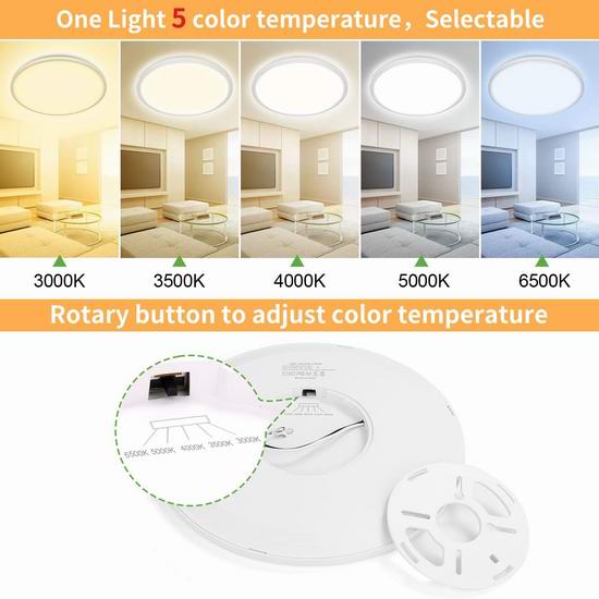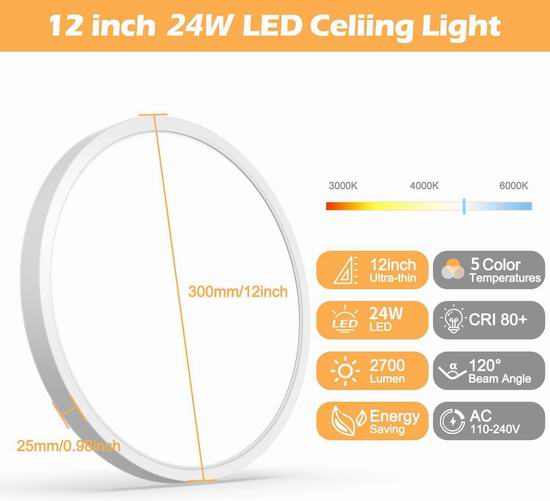 历史新低!Myteaworld 24W 12英寸 可调色温 LED吸顶灯2件套4.2折 25.2加元!