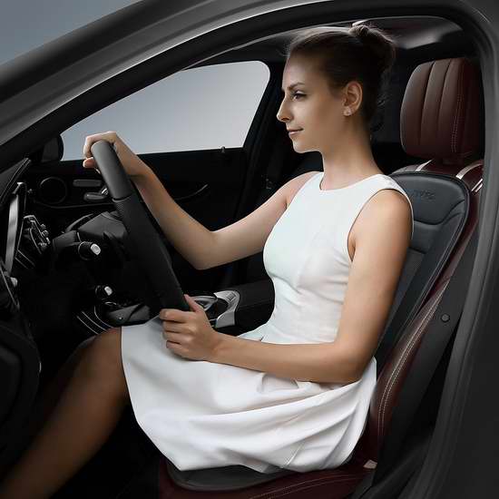 采用人体工程学设计,柔软抗污PU皮革包裹,防滑硅胶衬垫,专利VERSATILE电压设计,适用在汽车和普通座椅上使用,具有快速加热功能,不仅能在冬天御寒,还可以有效缓解腰背疼痛和肌肉紧张痛。设有3D通风透气网,内置风扇,在夏天可带来凉爽的驾车体验。