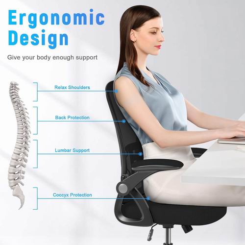 naspaluro 可调节高度人体工学中背办公椅 可翻转扶手+腰部支撑 109.99加元(原价 169.99加元)