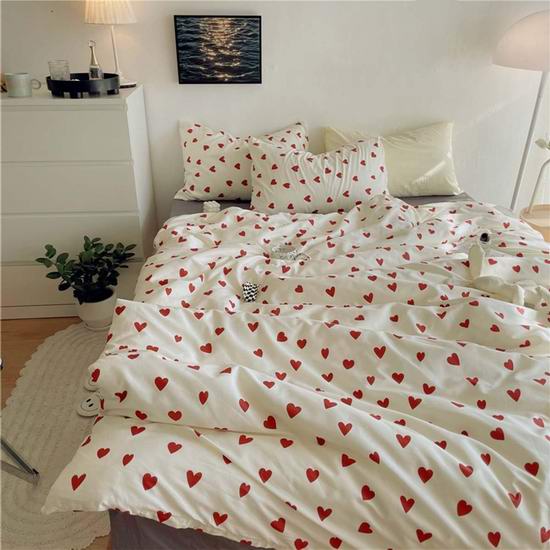 这款被套以白色为底,印有浪漫红心图案,营造浪漫温馨氛围。被套采用优质超细纤维面料,触感格外柔软,让您享受一夜酣眠。轻盈透气,夏季可作毯子/床罩使用,冬季可作被套保护您的被芯。包含1个被套和2枕套。