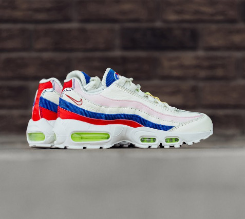 NIKE Air Max 95 SE 复古气垫慢跑鞋“白彩虹边” 三原色女生专属裸粉新色,这个SE系列的经典裸粉三原色已是深受女生欢迎的, 与Air Max 95正代相比, 这款SE 系列的粉蓝绿配色相对来说渐变层次并不是十分的明显, 反而更注重于鞋身的整体性 ,使得整双鞋显得更为简约百搭 ,女神范十足!极富层次感的鞋身线条, 以粉色和裸粉的飞线和细节装饰,沿用Air Max 95独特的层次纹理设计, 带来这款极为熟悉的简约配色方案 极富层次感的鞋身线条, 视觉效果熟悉又抢眼!并以牛巴革等多种材质拼接打照鞋身, 以抢眼的粉蓝线条进行点缀, 实属甜美系女孩不可错过的鞋款 ,最后搭载标志性的Air Max 气垫鞋底单元, 要知道这个鞋底可是掳获了多少人的心!