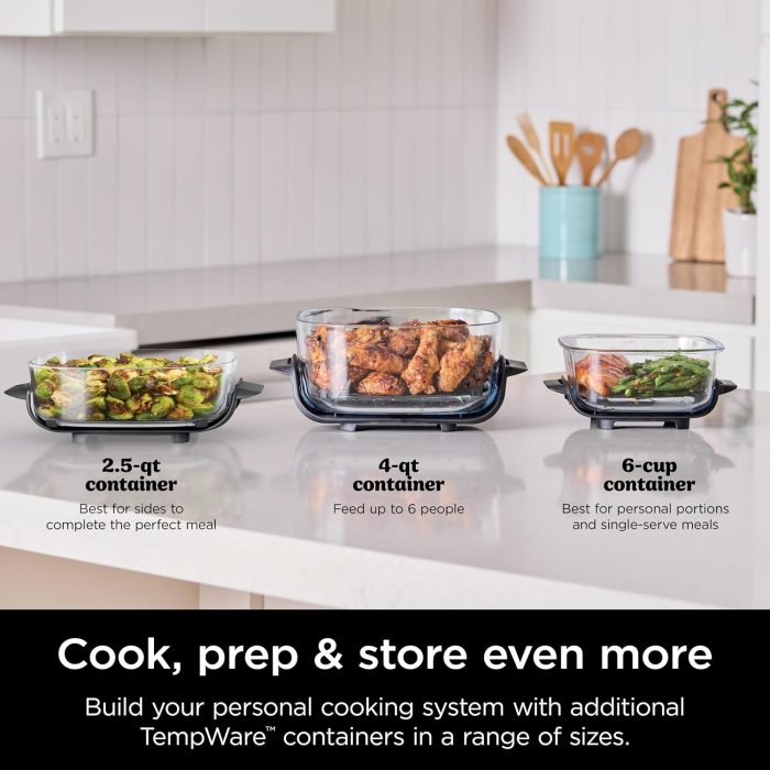 配备4夸脱和6杯TempWare硼硅酸盐玻璃容器,支持微波、冷冻及洗碗机清洗,实现从冷冻到酥脆的快速烹饪。其四合一功能(极致酥脆/烘烤/空气炸/再酥脆)配合1500W功率,7分钟即可完成单人份餐食,4夸脱容器可处理4磅食材。耐热玻璃和防漏盖设计确保安全便携,适配器扩展使用场景,嵌套式结构节省存储空间,是兼具高效与健康的多功能烹饪系统。