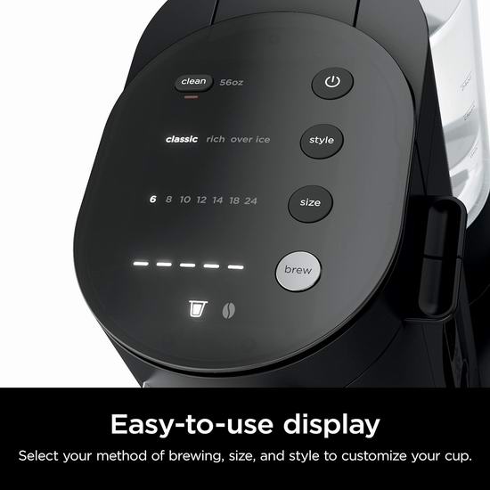 这款咖啡机具有2个冲泡系统,不仅可以冲泡咖啡粉,还能冲泡K-Cup咖啡胶囊,提供经典、浓郁、加冰的冲泡模式,能够让您在家中也能享受到咖啡馆的飘香。可冲泡 6、8、10 或 12盎司的胶囊咖啡,或选择6、8、10、12、18、24盎司的咖啡粉。配备56盎司水箱,出咖啡口最大可兼容24盎司旅行杯。