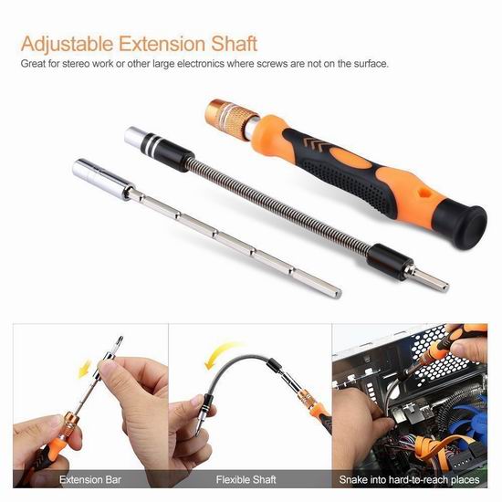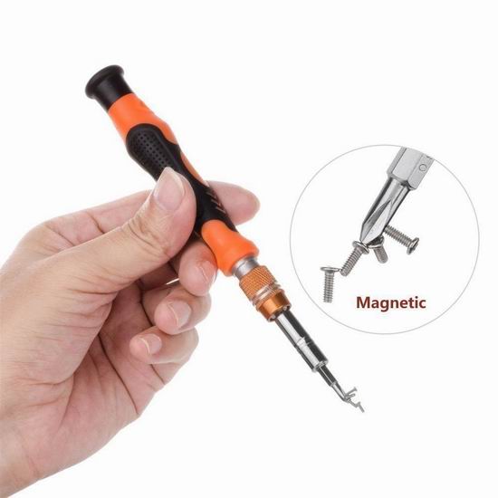 此款螺丝刀套装包含各种小型螺丝刀批头,可用于修理手机、平板电脑、电脑、眼镜、相机、玩具和家用电器等。