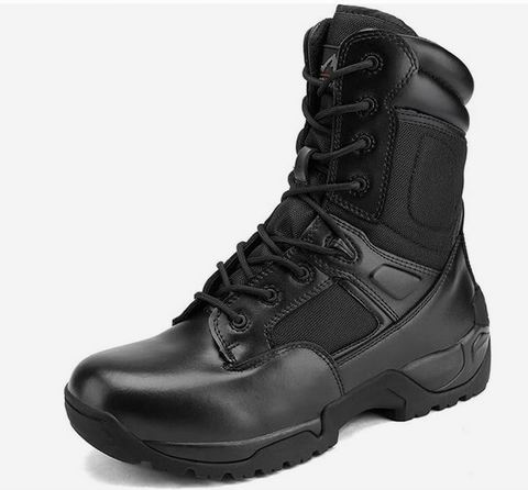 NORTIV 8男士战术靴主打多场景防护与便捷性,采用高耐磨皮革与透气面料结合的结构,配备YKK侧拉链+魔术贴实现快速穿脱。其核心为三层动态鞋底系统,包含可拆卸减震鞋垫、EVA缓震中底和防滑耐磨橡胶外底,旨在为远足、骑行等户外活动提供脚踝支撑、冲击防护与全天候舒适。