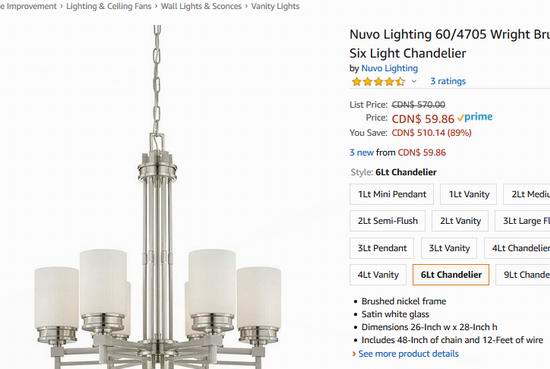 超级白菜!Nuvo Lighting 60/4705 6灯组吊顶灯1.1折 59.86加元包邮!