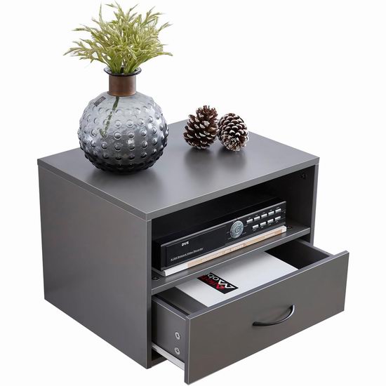 这款套装包括一个浮动床头柜和一个浮动收纳架,适合用作卧室床头柜、厨房橱柜或门廊处的浮动桌,节省地面空间,并且不会阻挡吸尘器。安装简便,内部强力挂钩确保稳固并易于移动。采用中纤板制成,坚固耐用,双层设计,其中一个床头柜内置一个抽屉。
