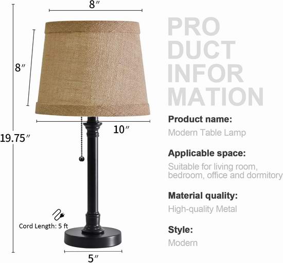 台灯采用优质金属台灯底座和布艺灯罩,优雅时尚,可将光线柔和地过滤成漫射光,营造温馨舒适的氛围,同时减少对眼睛的伤害。电源线、灯座和插头均通过了UL认证,兼容E26标准灯泡(不包含)。