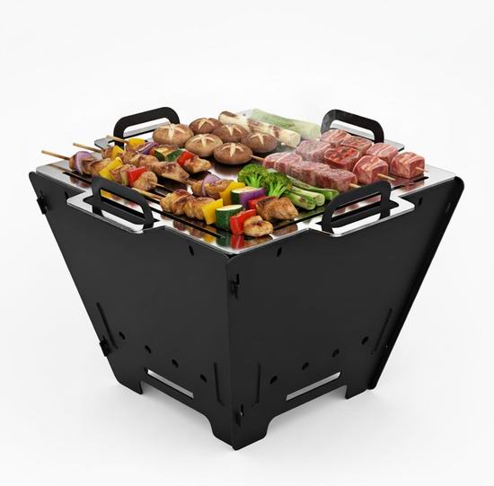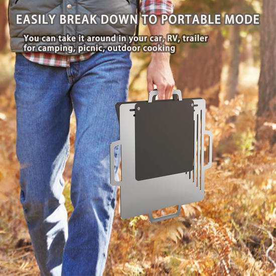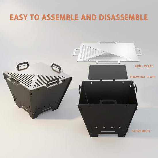 这款二合一火盆烧烤架,可根据需要用作烧烤架、火盆和锅架。既可用作烧烤架烹饪,也可拆下烤架,变成舒适的火盆,是露营、野餐、海滩等活动的理想之选。采用防锈、耐热材料制成,可承受高达600°F高温,配有食品级430不锈钢烹饪格栅,确保满足所有户外烹饪需求,安全耐用。兼容多种燃料类型,如干草、树叶、树枝、木柴或木炭。两侧均设有通风口,可促进最佳空气循环,提高燃烧效率,确保食物均匀受热。采用可折叠设计,易于安装和携带。