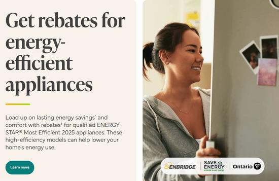 面向连接安省电网的所有家庭(包括house、公寓等),只要用高效型号替换家中的旧电器,即可申请补贴返利。不限购买地点,任何零售商线上/线下都可。点击进入申请页面。
