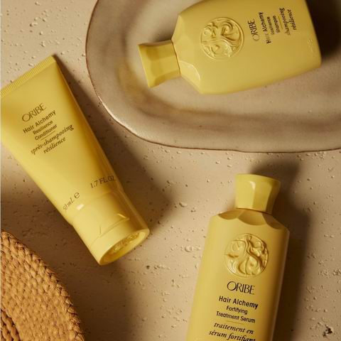 Oribe Alchemy 系列专为脆弱、受损发质设计,包含洗发水与护理精华三款产品。洗发水融合奇亚籽、生物发酵竹叶与植物蛋白复合物,能深入发芯,从内部强化发丝结构,提升弹性与韧性,有效减少拉扯断发。持续使用可令头发更结实柔顺,并具防紫外线保护功能,帮助秀发抵御日晒伤害,重现健康光泽。