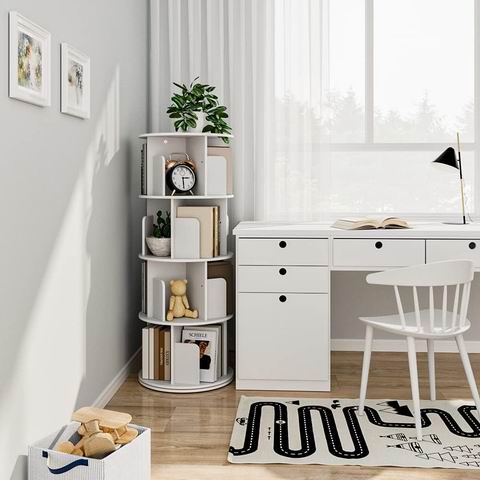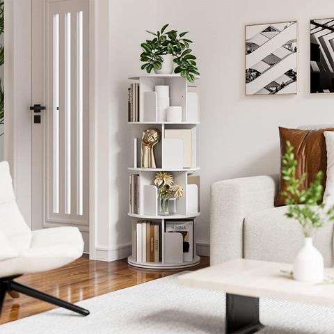 一款专为小空间设计的 4 层立式书架,采用 360° 可旋转设计,方便取放与展示。优质刨花板结构稳固耐用,不易晃动,圆角防撞设计安全适合儿童使用。每层分为 4 个隔间,可容纳 50-80 本书,顶部还能摆放玩具或相册,收纳能力强大。整体尺寸 15.7 x 15.7 x 50.4 英寸,适用于儿童房、书房、卧室或客厅等角落空间,让家居整洁又富有趣味。