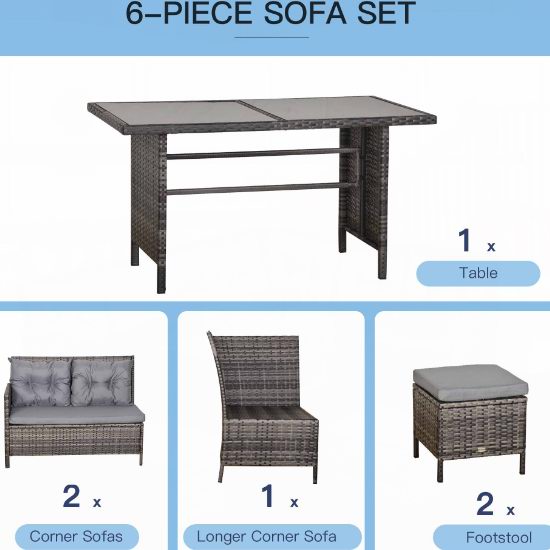 Outsunny 庭院软垫藤条沙发+茶几6件套4.7折 692.99加元包邮!