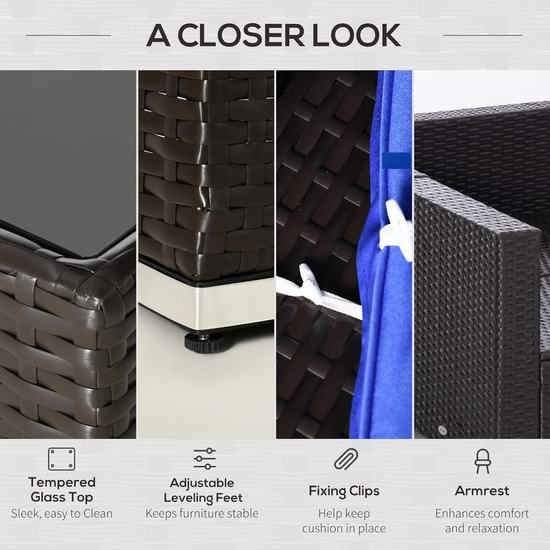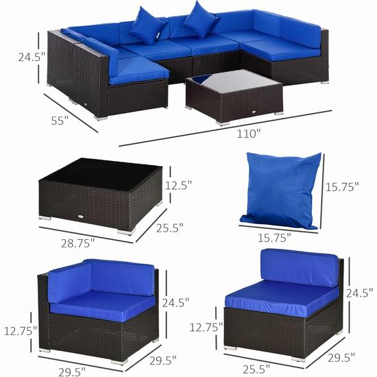 白菜价!历史新低!Outsunny 庭院软垫藤条沙发+茶几7件套3.2折 457.99加元包邮!