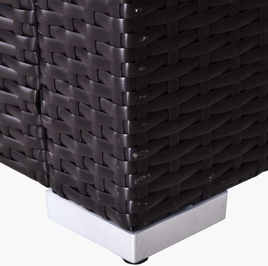 这款藤条沙发可为您的户外空间增添别致风采。包含四件中间沙发、两件转角沙发和一张茶几,可根据您的户外空间灵活摆放,完美契合您的需求。采用镀锌钢框架+抗紫外线PE材质,仿柳条编织而成,坚固耐用,茶几顶部带钢化玻璃台面。配有柔软且支撑性良好的加厚坐垫和靠垫,打造最佳的舒适户外坐感体验。坐垫套均配有拉链,方便拆卸清洗。