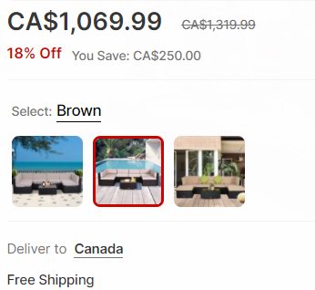 Amazon网店销售,官网原价:1319.99加元,现价:899.99加元,点击coupon降为749.99加元包邮,点击进入订购页面
