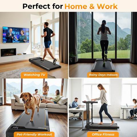 OWLSKY 二合一办公桌下跑步机,2.5马力静音迷你跑步机,最大承重250磅,带遥控器和LED显示屏,适用于家庭和办公室。