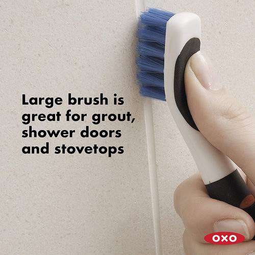 OXO Good Grips的这款深层清洁毛刷套装带有2个毛刷,可清洁那些灰尘容易积聚,难以清洁的缝隙角落位的污垢,两把刷子均带有耐用的尼龙刷毛和柔软舒适的防滑手柄,大刷头的那把是用于刷瓷砖灰浆缝隙和浴室门框槽等,其刷毛背面的柔软防滑的拇指垫舒适且方便发力猛刷,小刷头那把紧凑刷头刷毛突出呈尖角,适合刷固定物之间的缝隙等紧窄处,其尾部还带有刮刀可清除去水口处积聚的顽固污渍和其他裂缝位。设计上包括刷头弯曲角度,防滑,软垫等都比普遍使用的牙刷要舒服好用。