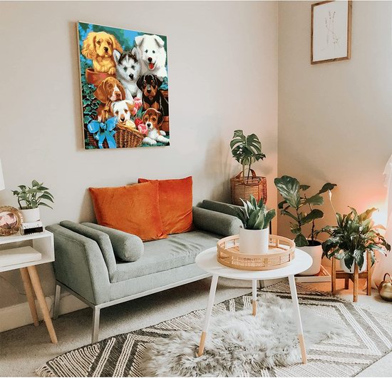 无需绘画基础,只需按照画布上的数字涂上对应的颜料,就可以画出一副高质量油画,非常适合亲子一起创作,也可以通过绘画打发空闲时间,减压放空心灵。本套装包含一张画布,1套颜料,3支画笔,2个钩子和2个钉子。不含画框。